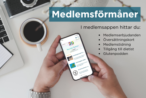 - Tillgång till medlemsappen Cardskipper (där du hittar erbjudanden, nyheter, digitala CeliakiForum, översättningskort, lokala aktiviteter etc.)