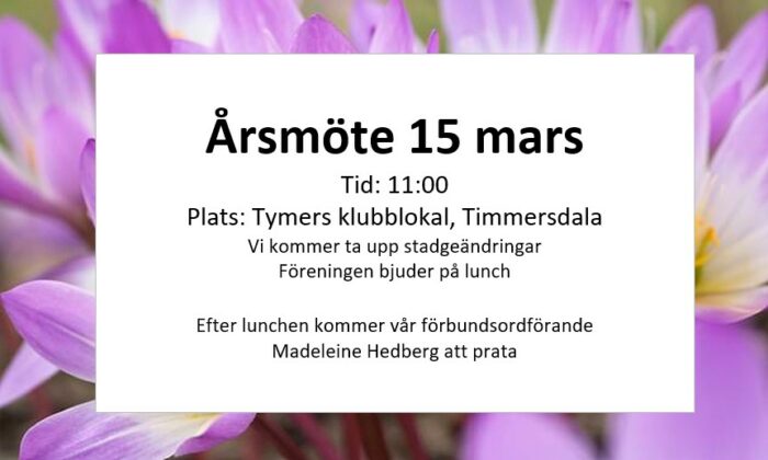 Välkommen till föreningens årsmöte. Handlingar ligger här.